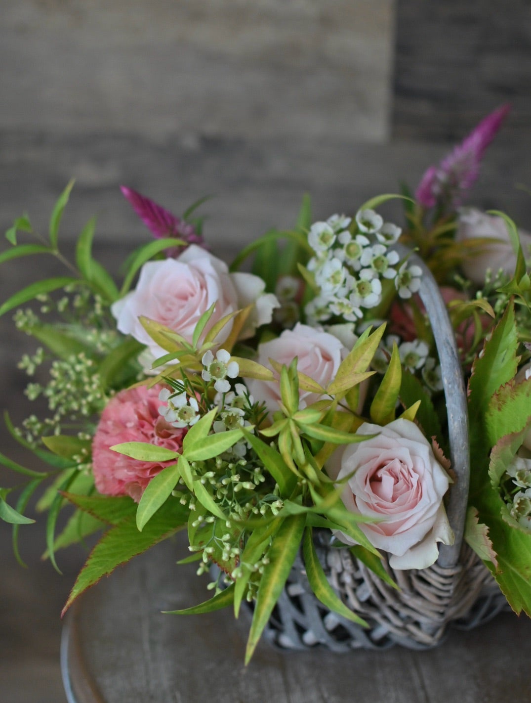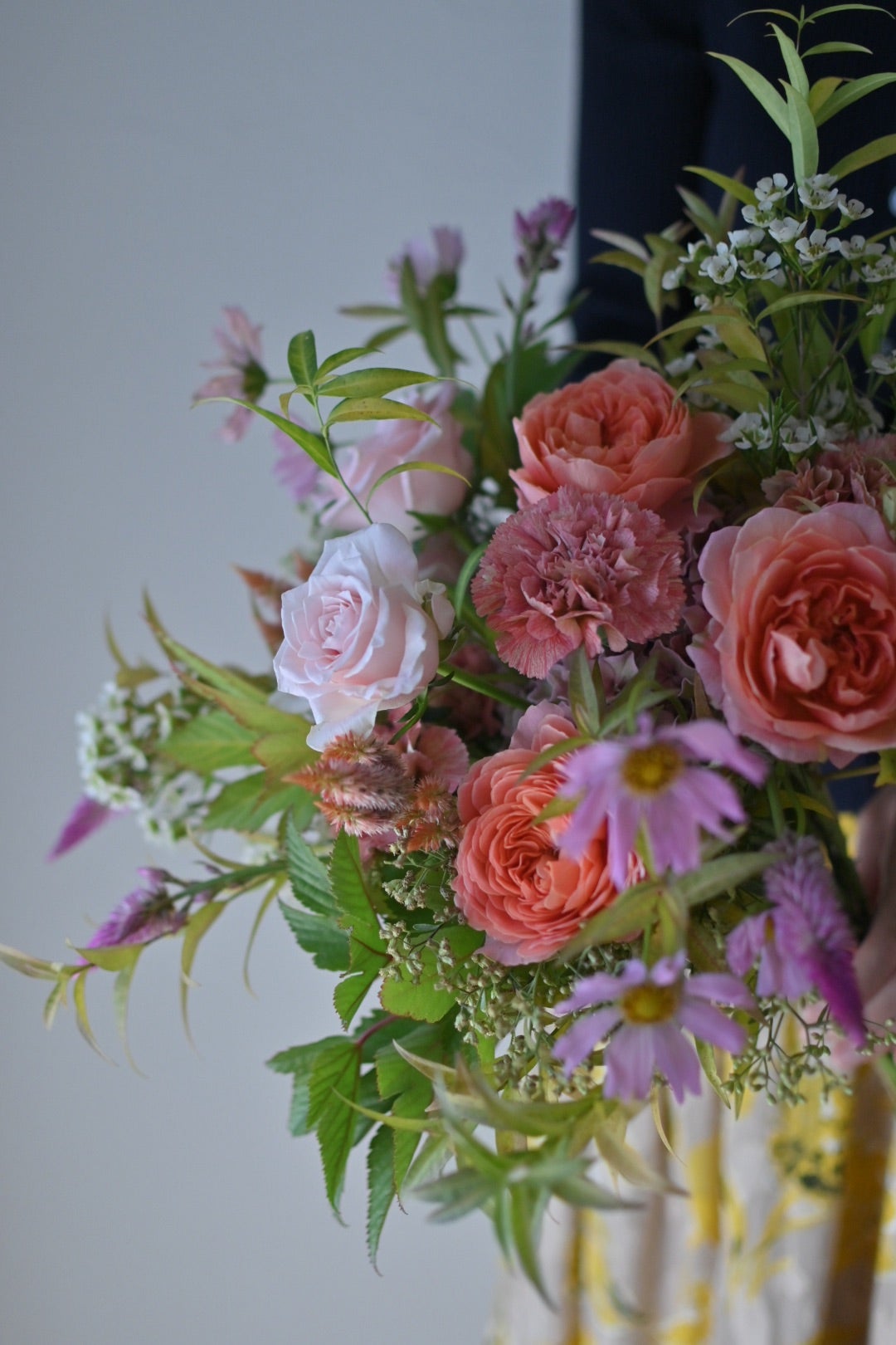 バラとコスモスと紫陽花の秋ブーケ