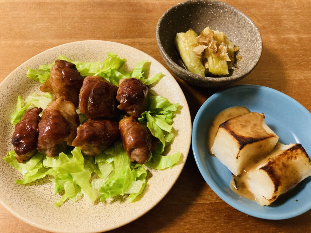 トンテキと副菜。寝る前のスマホをやめて読書へ