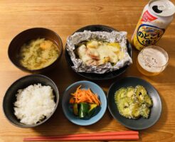 鮭の干物の晩ごはん。夏休みが始まりました。
