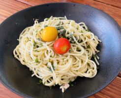 大葉とツナのパスタ 市場で大量に入って100円で売られていた地元産の大葉。 茎付きで、まるで生えていたままみたいな状態で何本も入っているものを、夏になると何度も購入して毎日大量にいただいています。 材料は大葉、ツナ缶、ニ・・・