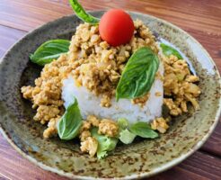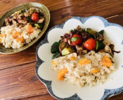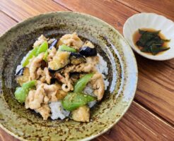 ナスみそ丼と、豚入り炊き込み丼