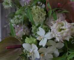 胡蝶蘭、アンスリウム、紫陽花のブーケ