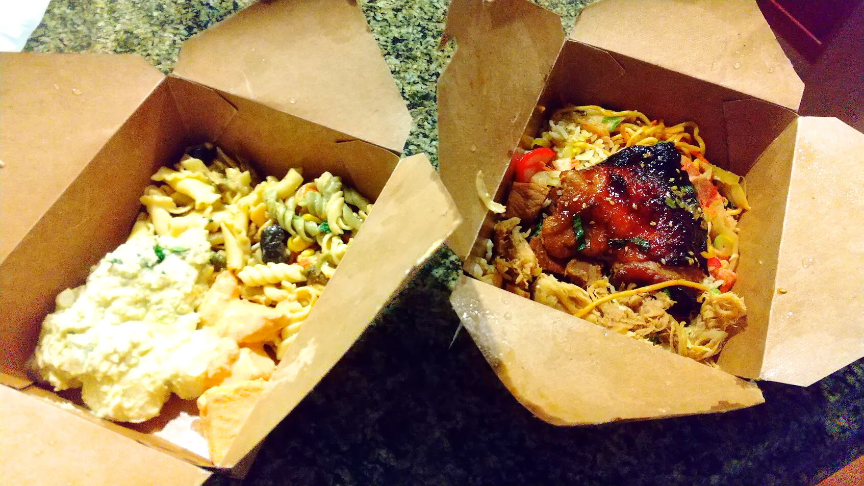 炒飯と焼きそば、チキンにカルアポーク、焼き豚など。