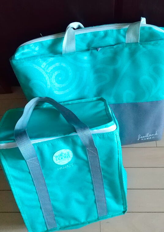 だいぶ前のハワイ旅で買ったフォールフーズとフードランドの保冷バッグ。