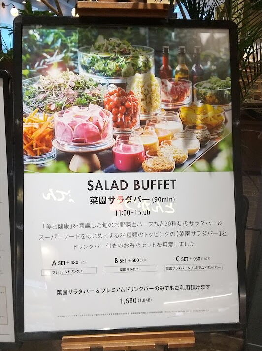 ランチメニューに菜園サラダバーとプレミアムドリンクバーがセットになったCセットにしましました。