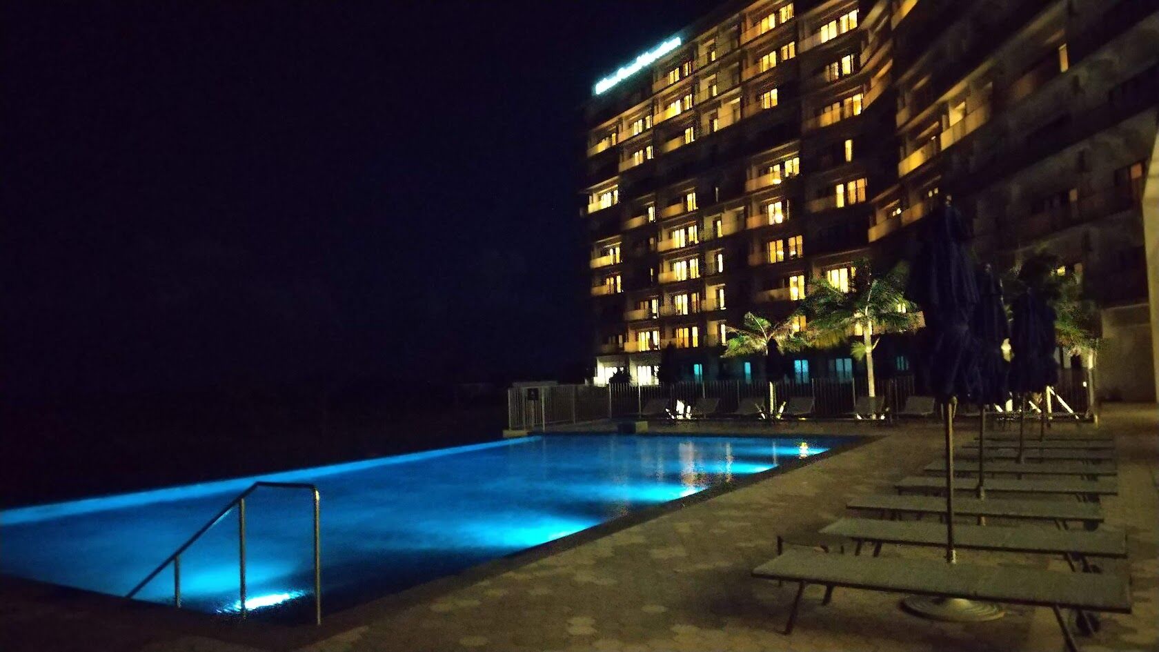10月中なかばの沖縄は30度こえでしたが、プールの水はやや冷ため。