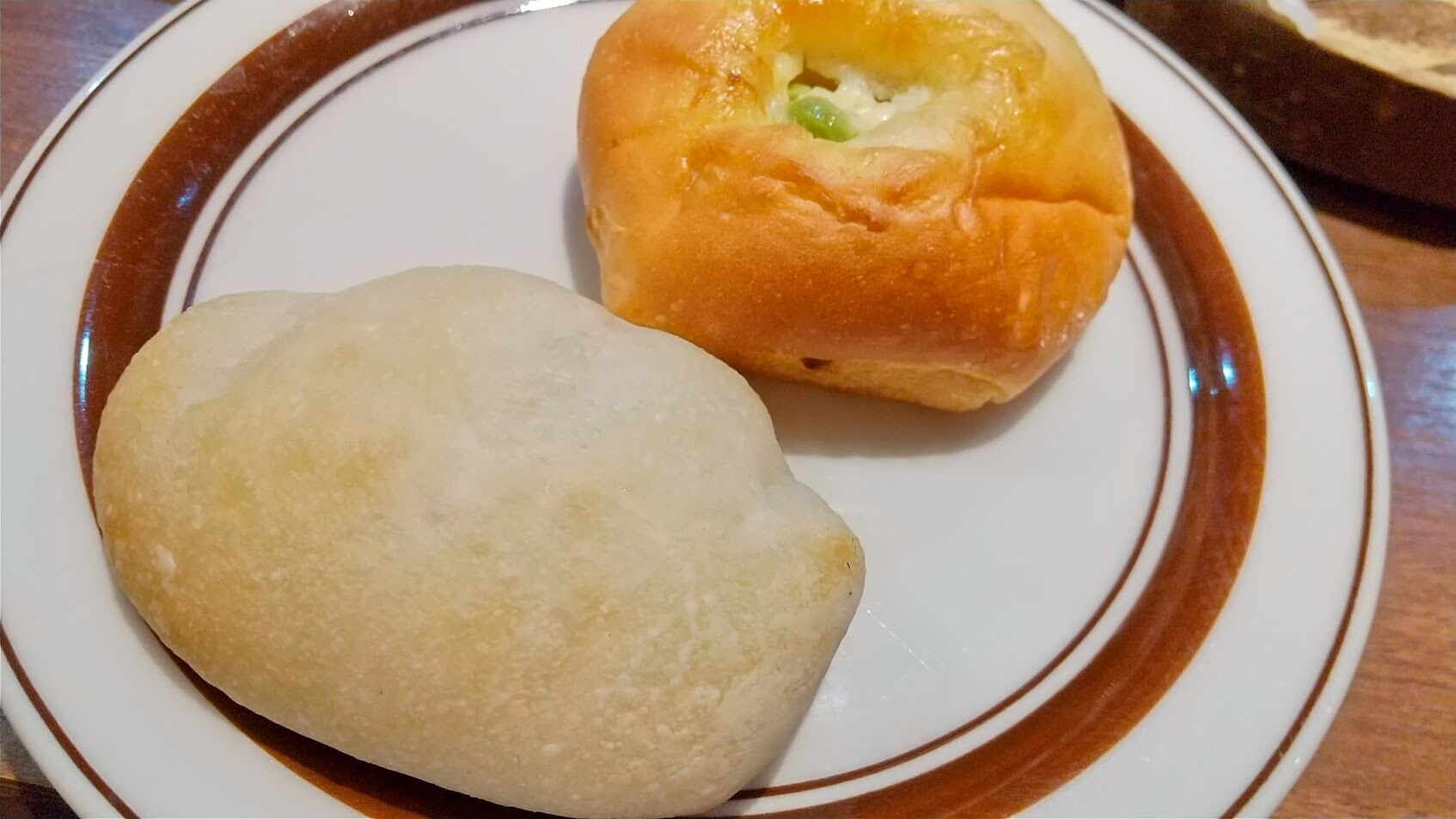 ごはんもパンも食べられるところがイイネ!ライスだけでお腹いっぱいだったけど、食い意地がはってパンを二つもってきてしまいました