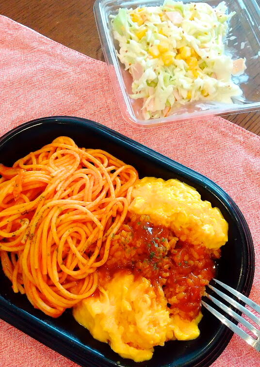 私はナポリタンとオムライス弁当、それにコールスローサラダをつけて。