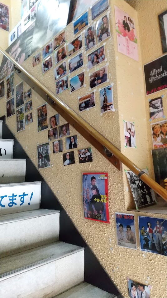 階段の両側に映画スタアのブロマイドやポスターがびっしり。