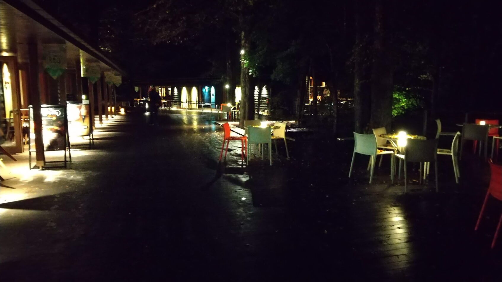昼間は人でいっぱいのハルニレテラスですが、人影まばら。