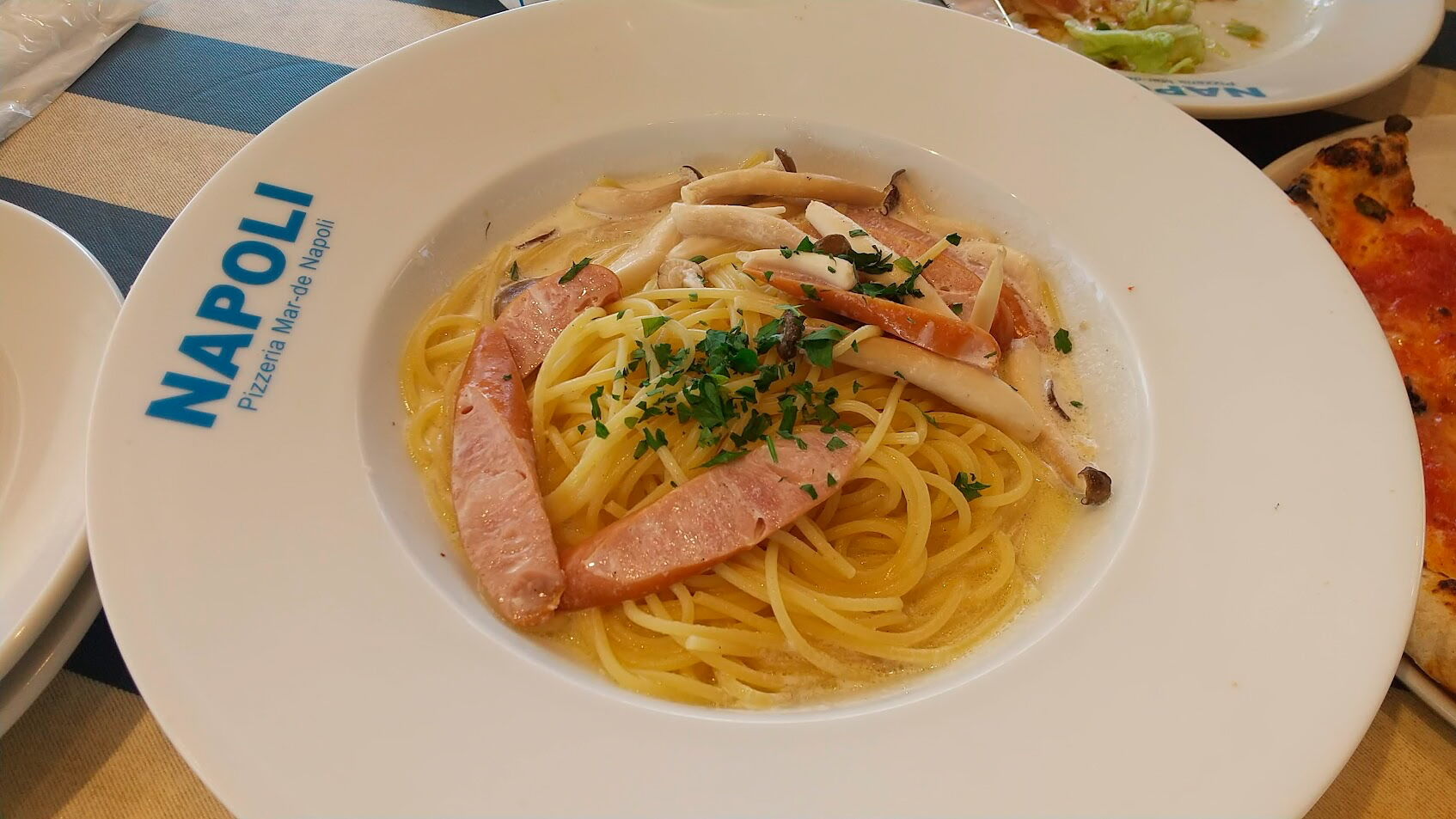 パスタとピッツァを1種類ずつオーダーして二人でシェア。