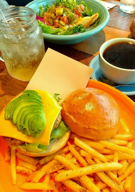 私はアボカドチーズバーガー、夫はアヒポキポキライスボウル。