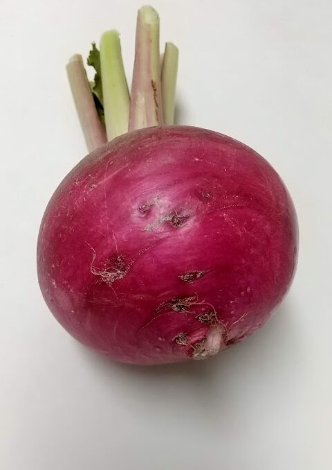 外側が緑色で大きなカブのようですが大根で、切ると鮮やかな赤紫。