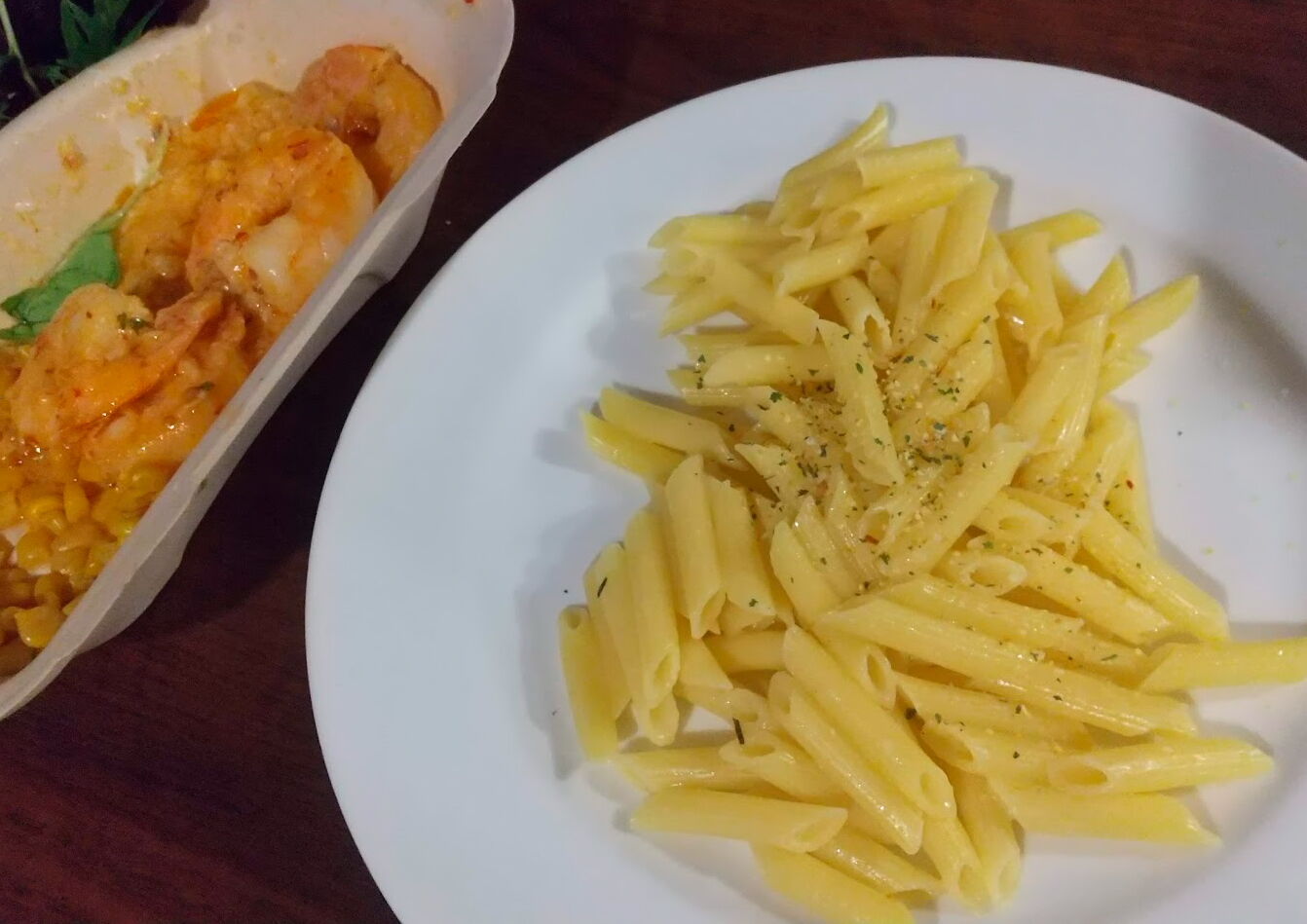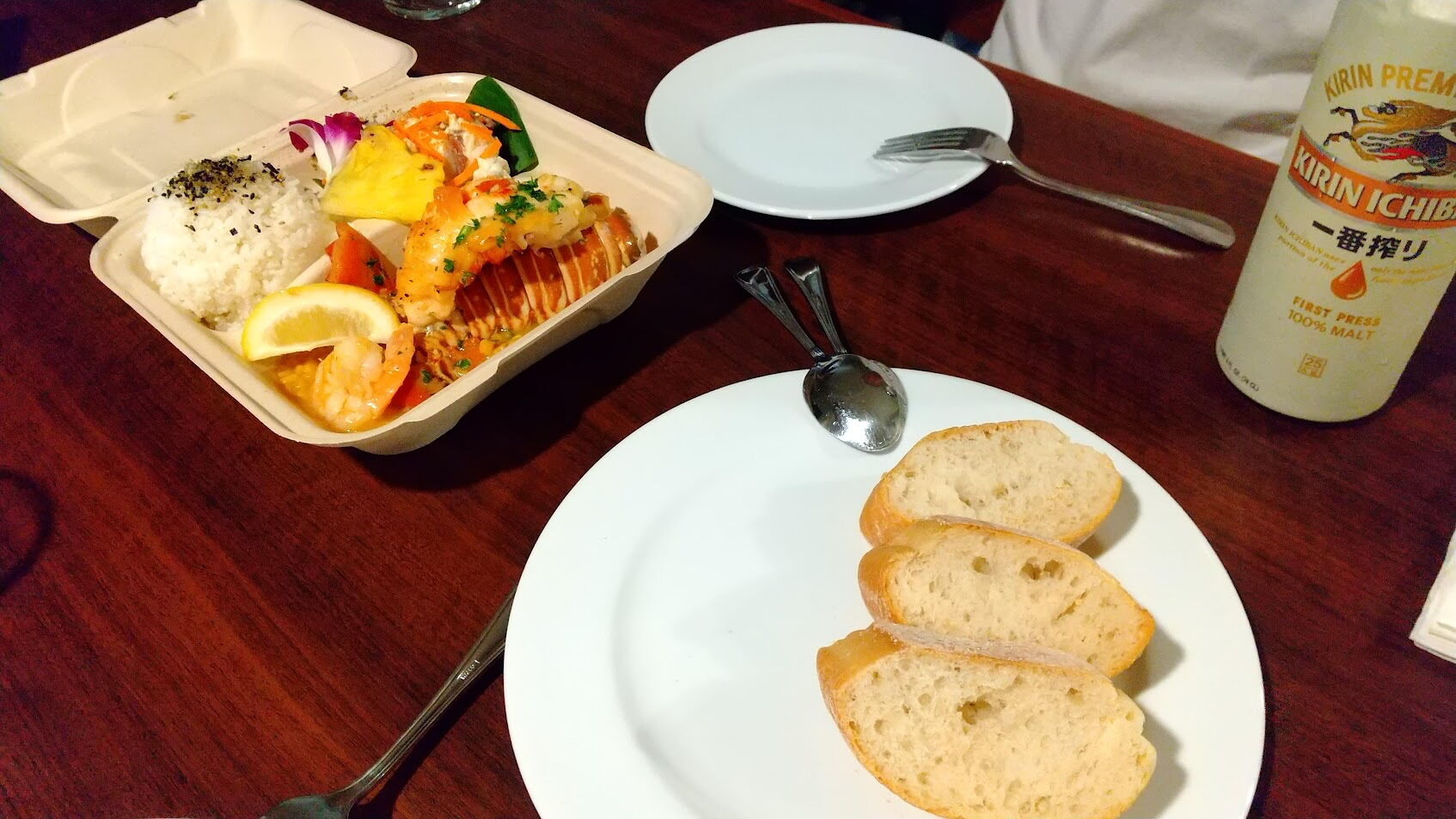 ガーリックシュリンプのソースをご飯とからめてもおいしい。