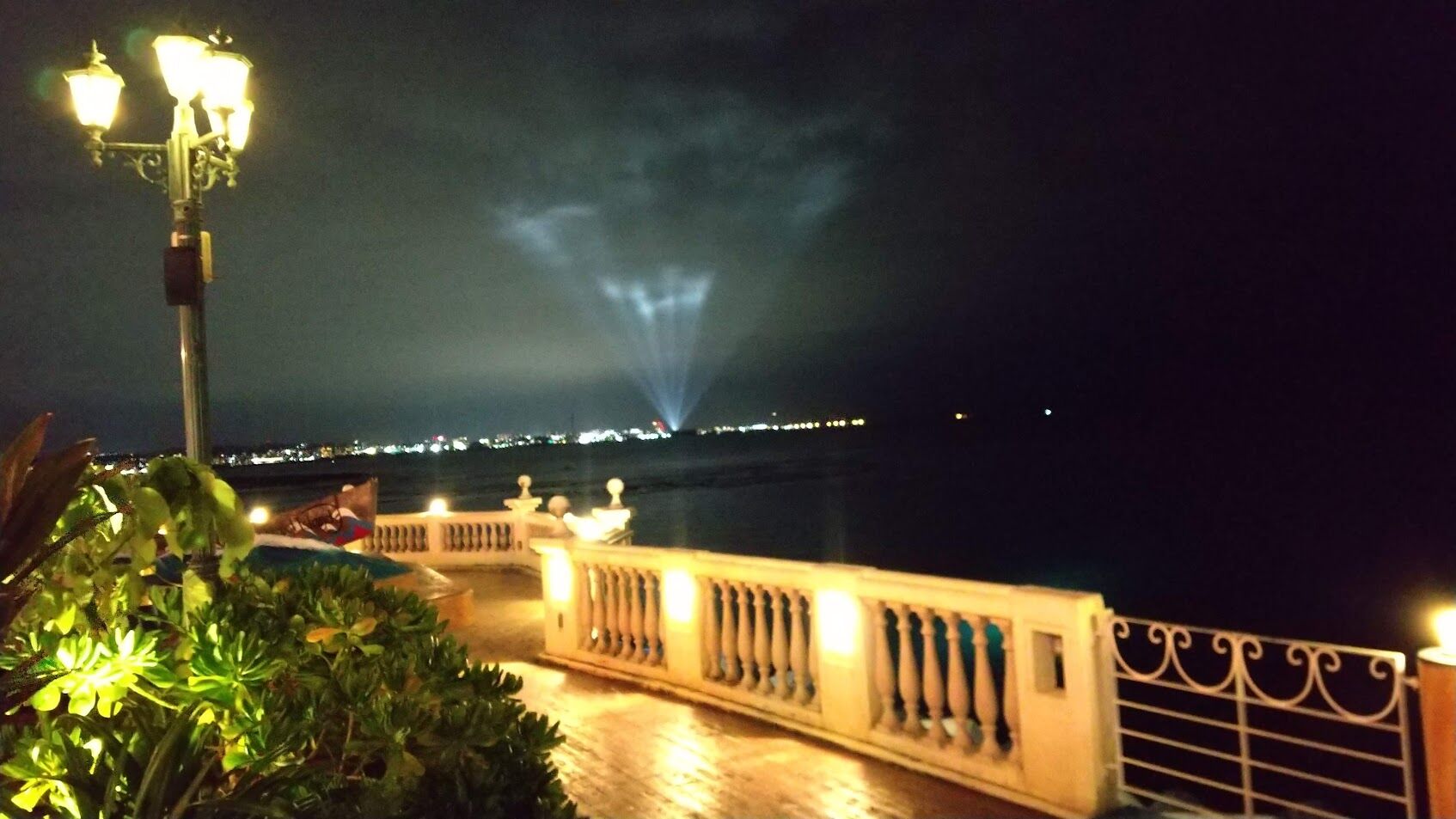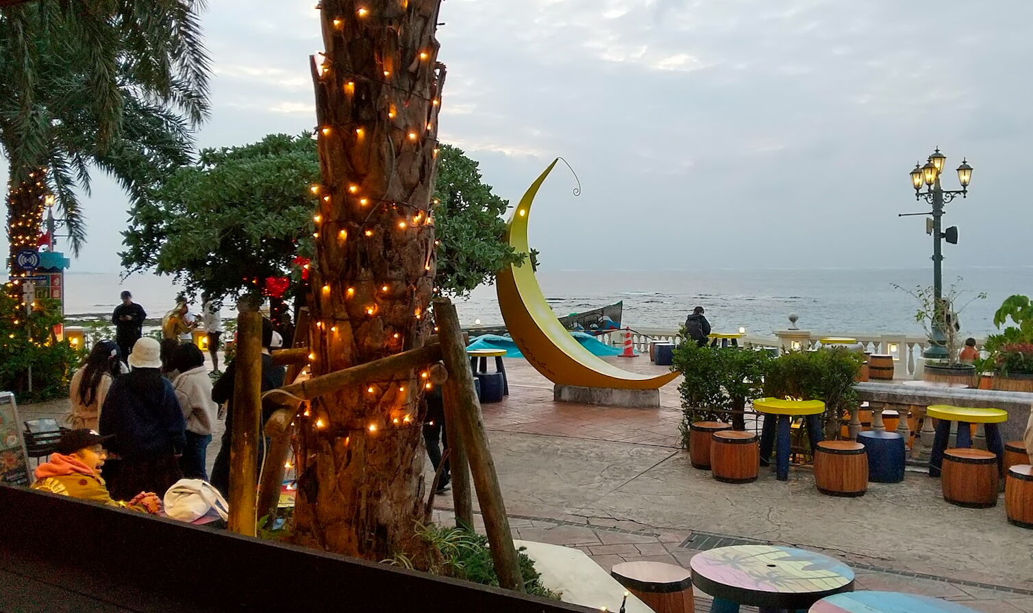 月のオブジェと海とを眺めながらの食事は旅気分をあげてくれました。